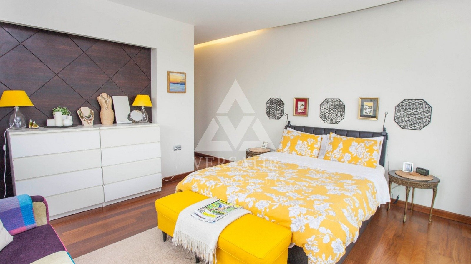 360 m² brüt kullanım alanına sahip daire; 6 oda, 1 salon, kapalı mutfak ve 4 banyodan oluşmaktadır.